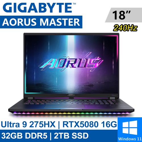 AORUS MASTER 18 BYHC5TWD65SH 18吋 黑(Intel Ultra 9 275HX//32G DDR5/2TB PCIE/RTX5080 16G/W11)