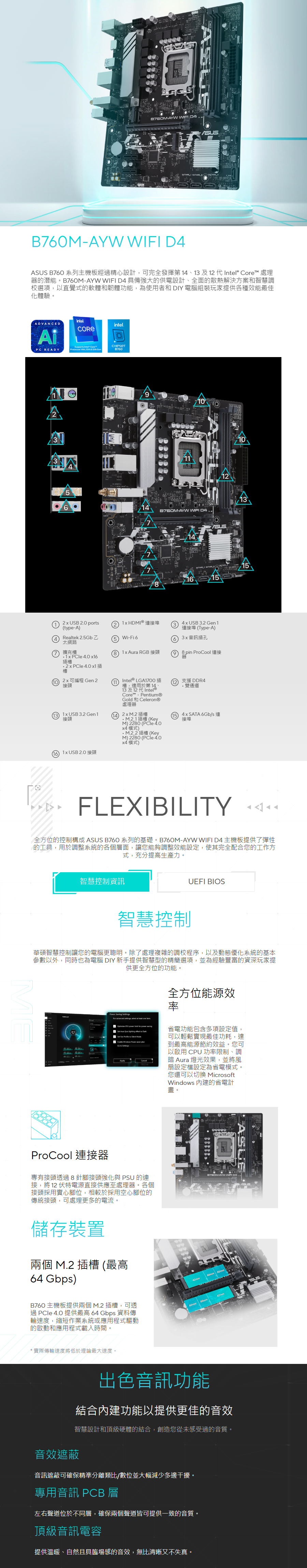 華碩 B760M-AYW WIFI D4 (M-ATX/1H/2xM.2/4xSATA/LAN 2.5Gb+無線)